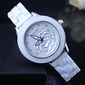 DEALS Womens' Fashion Ceramic luxury diamond Camellia quartz watch Circular High quality Japanese watch movement Cool Watches Unique Watches OFFER