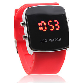 Silicone Band Women Men Unisex Jelly Sport Style Square Mirror LED Wrist Watch - Red